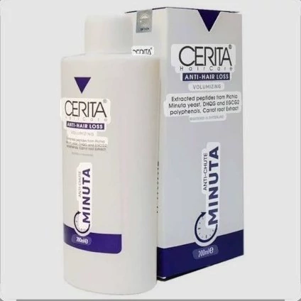 شامپو ضد ریزش( مینوتا) سریتا مناسب موی خشک پپتیدهای استخراج شده ازمخمر پیکیامینوتا پلی فنول های dhQGوEGcg2عصاره ریشه هوی