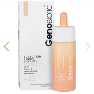 کرم ضد افتاب ژنو بایوتیک مناسب پوستهای چرب ومختلط رژ روشن فاقد چربی فاقد پارابن