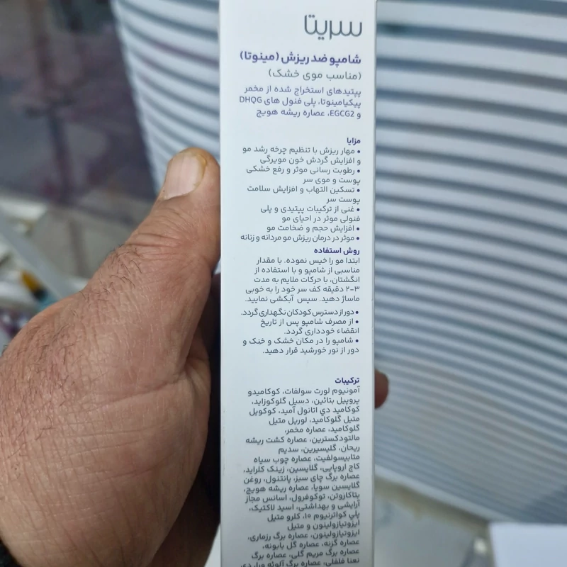 شامپو مینوتا سریتا برای موهای خشک غنی از ترکیبات پلی فنلی و پپتیدی