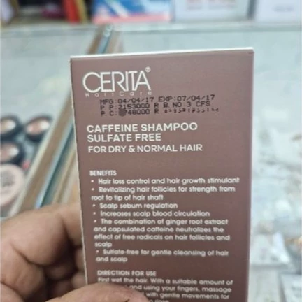 شامپوحاوی کافئین بدون سولفات سریتا مناسب موهای خشک ومعمولی کافئین کپسوله شده عصاره ریشه زنجبیل