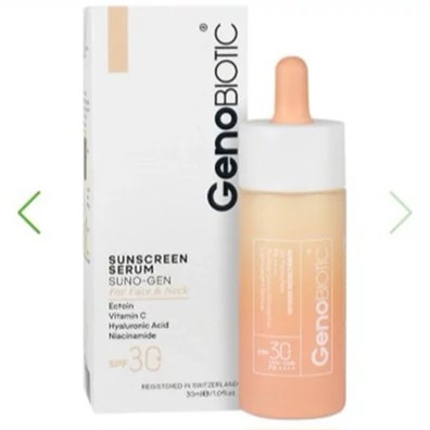 سرم ضد آفتاب صورت و گردن SPF30 ژنوبایوتیک با فرمولاسیون سبک، محافظتی موثر و بدون چربی در برابر اشعههای مضر UV فراهم میکند. این محصول علاوه بر محافظت، آبرسانی عمیق و روشن کنندگی پوست را نیز تضمین مینماید و بدون ایجاد حساسیت یا سنگینی روی پوست اثر خود را میگذارد.